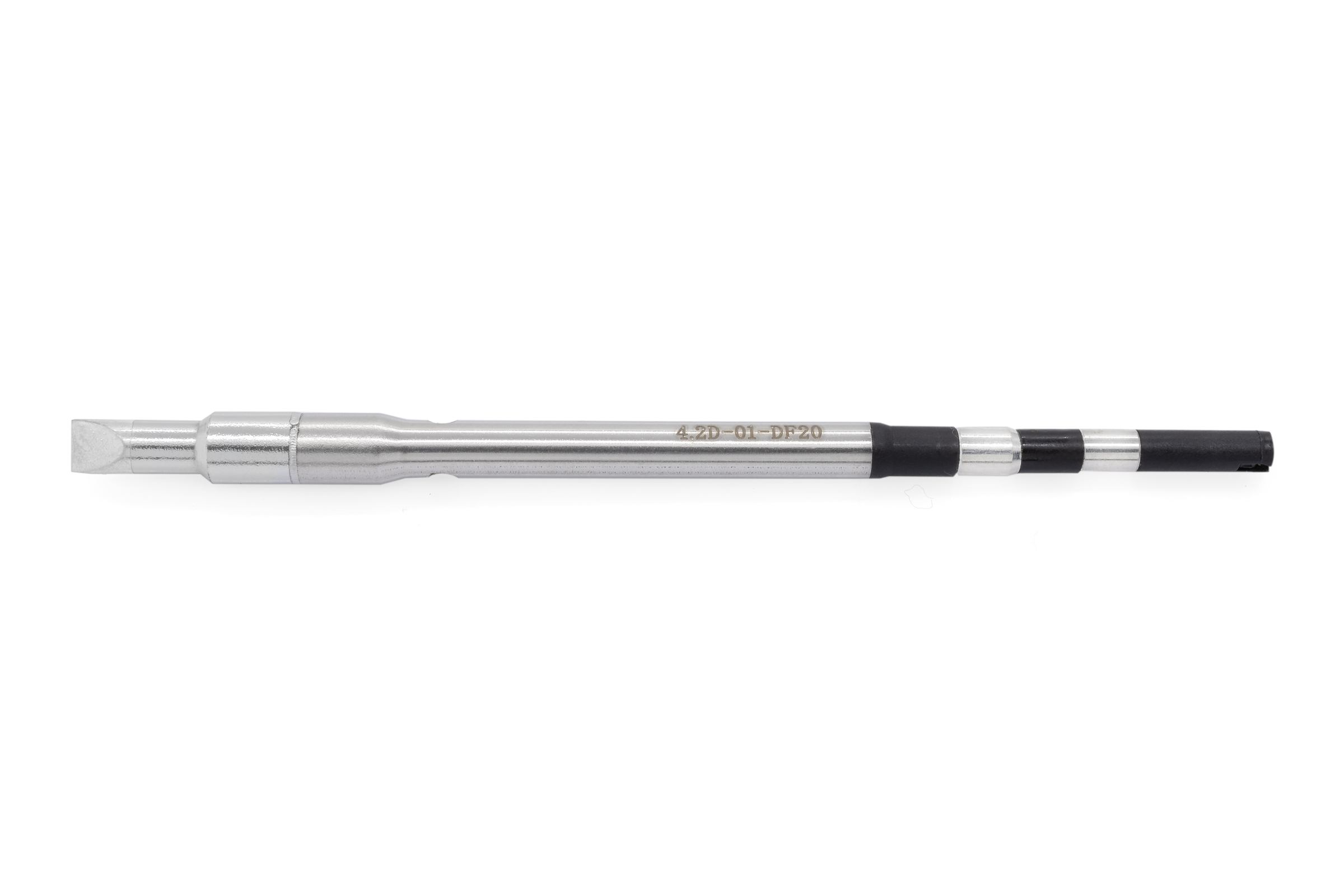 QUICK soldering tip for TS8, straight, slim, extended, chisel-shaped blunt 1.6 mm wide x 0.7 mm, 5 mm solder wetting
