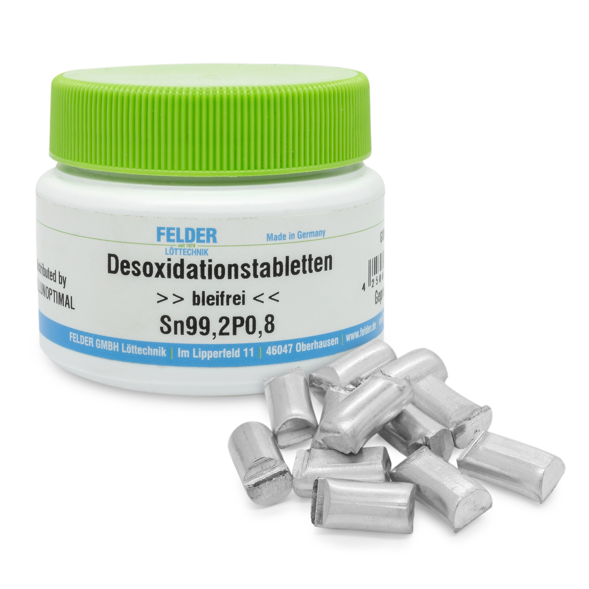 GALLUNOPTIMAL Desoxidationstabletten Reduzierung Krätzebildung, Phosphorgeh. 0,8 % P, bleifrei Sn99,9P, Pellets, 250 g Dose