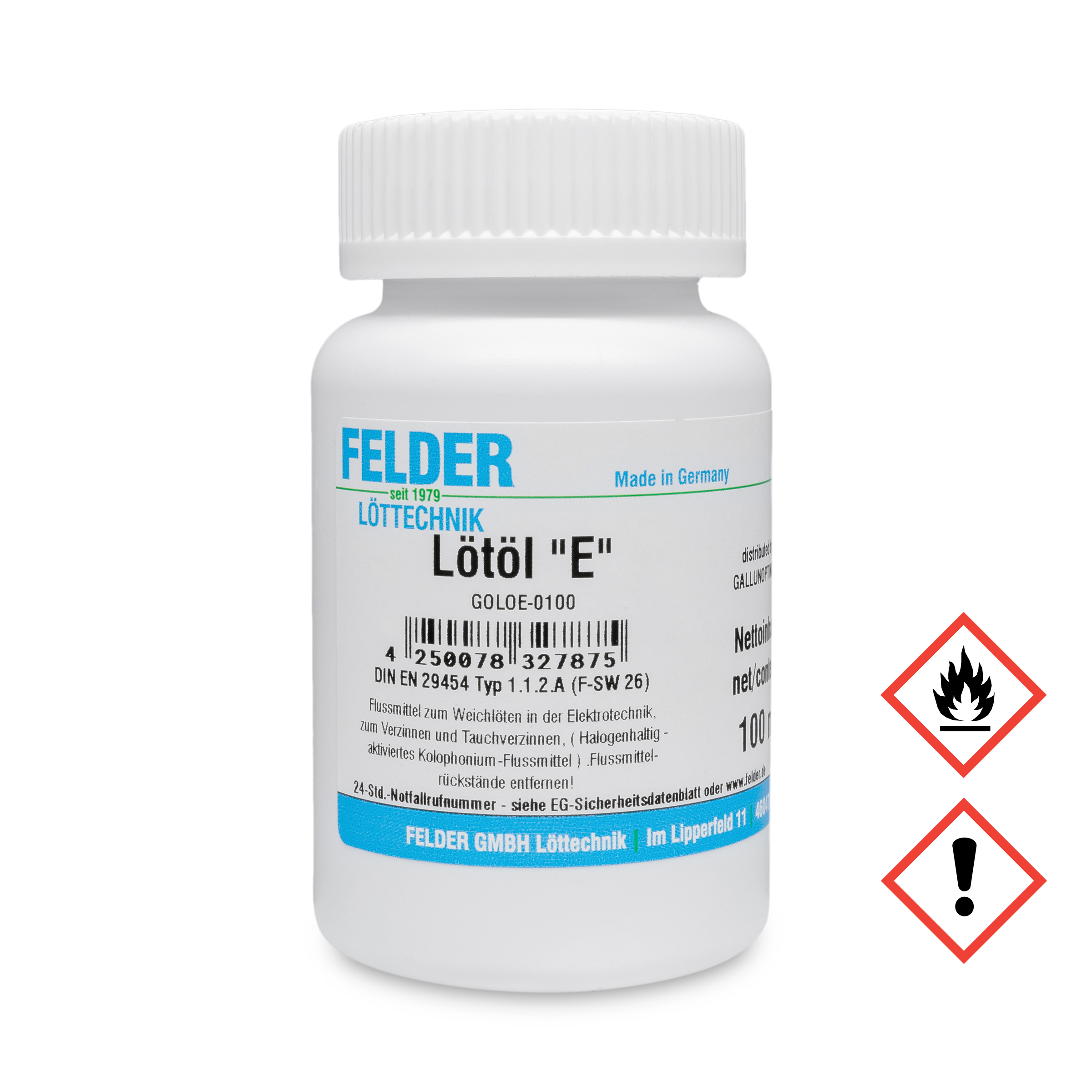 GALLUNOPTIMAL ISO-Flux E Lötöl Flussmittel Weichlöten Elektrotechnik, mittelmäßig aktiviert, ROM1, halogenh < 1 %, 100 ml Flasche