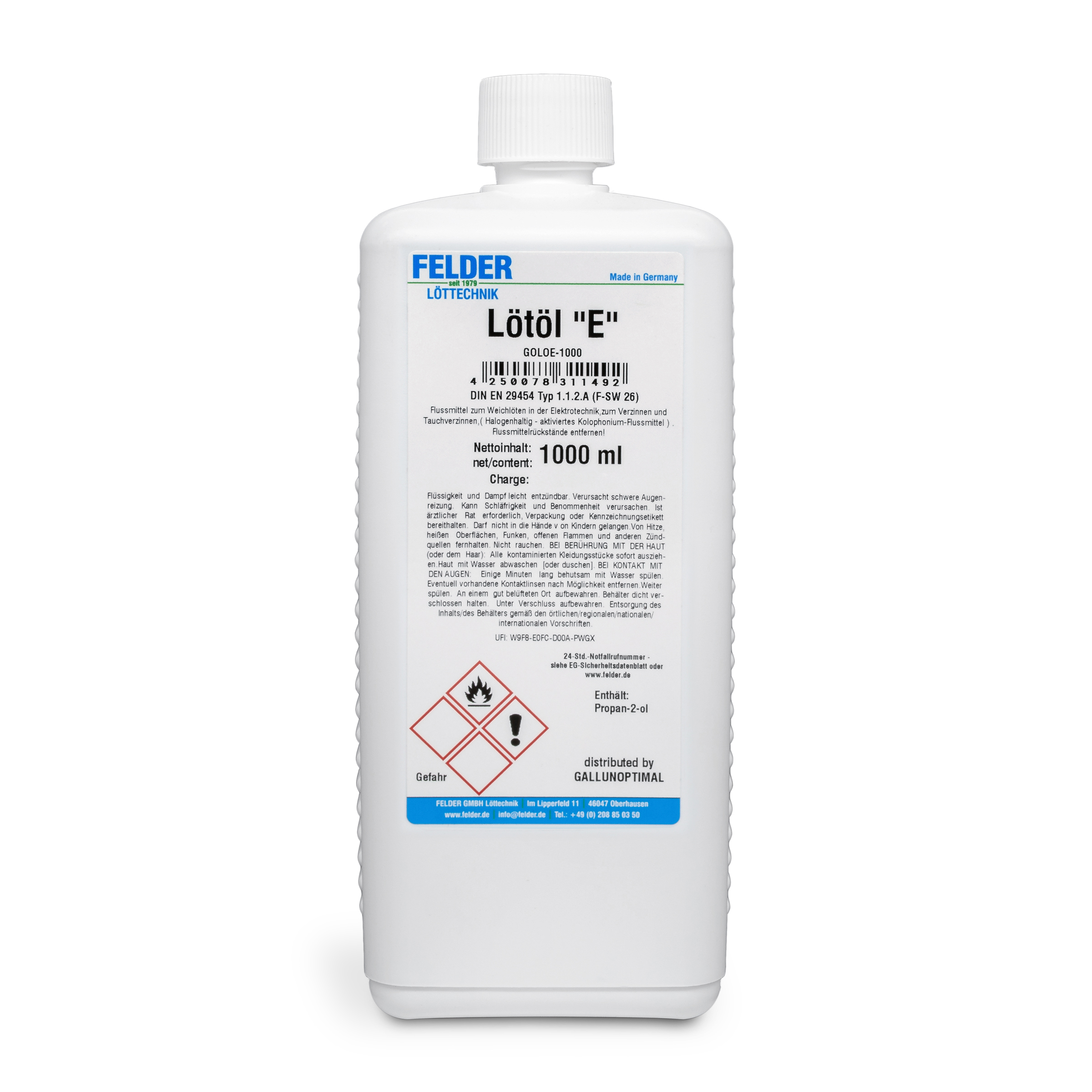 GALLUNOPTIMAL ISO-Flux E Lötöl Flussmittel Weichlöten Elektrotechnik, mittelmäßig aktiviert, ROM1, halogenh. < 1 %, 1 L Flasche