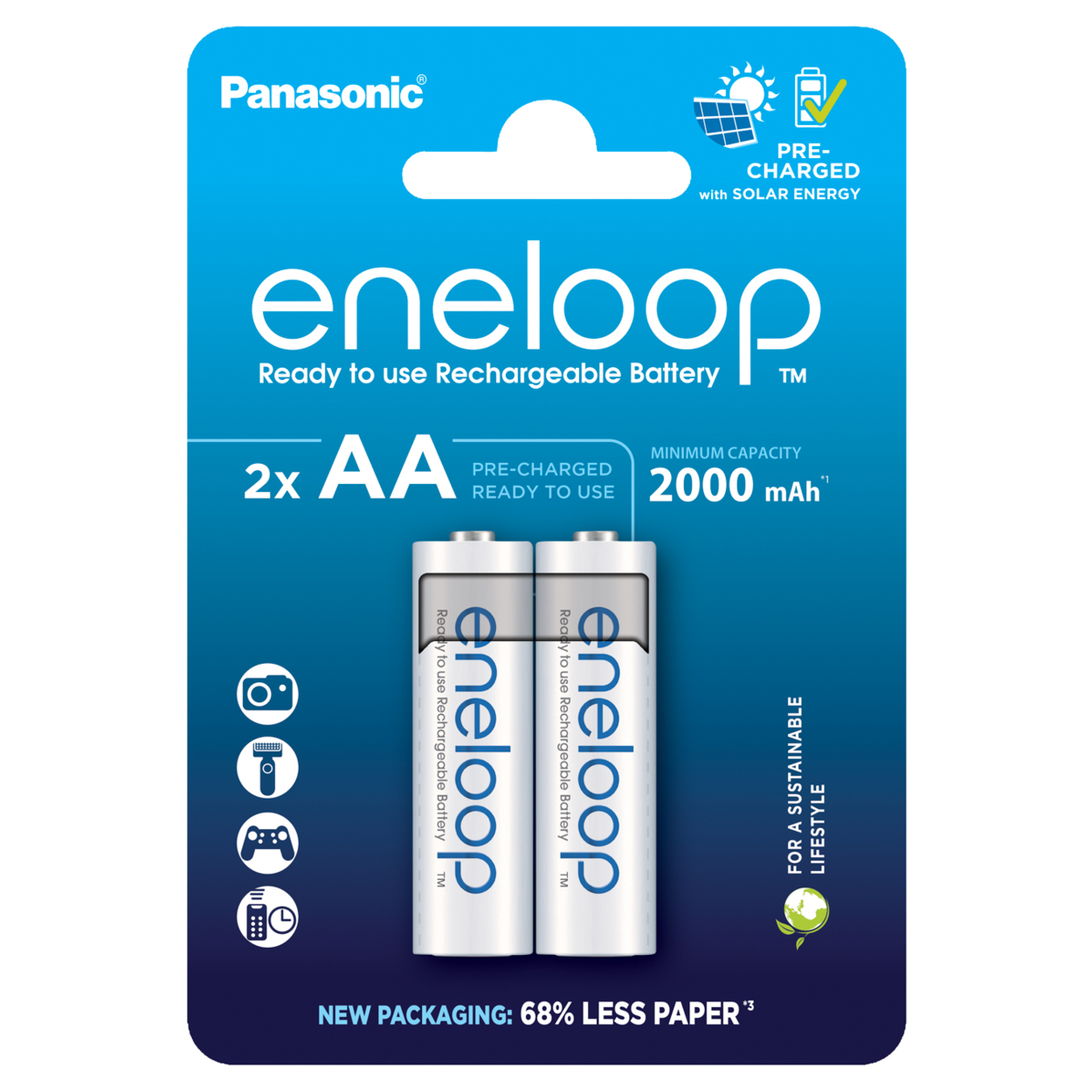 Panasonic eneloop, NiMH (pre-charged), min. 2,000mAh, AA Mignon, in a blister pack of 2