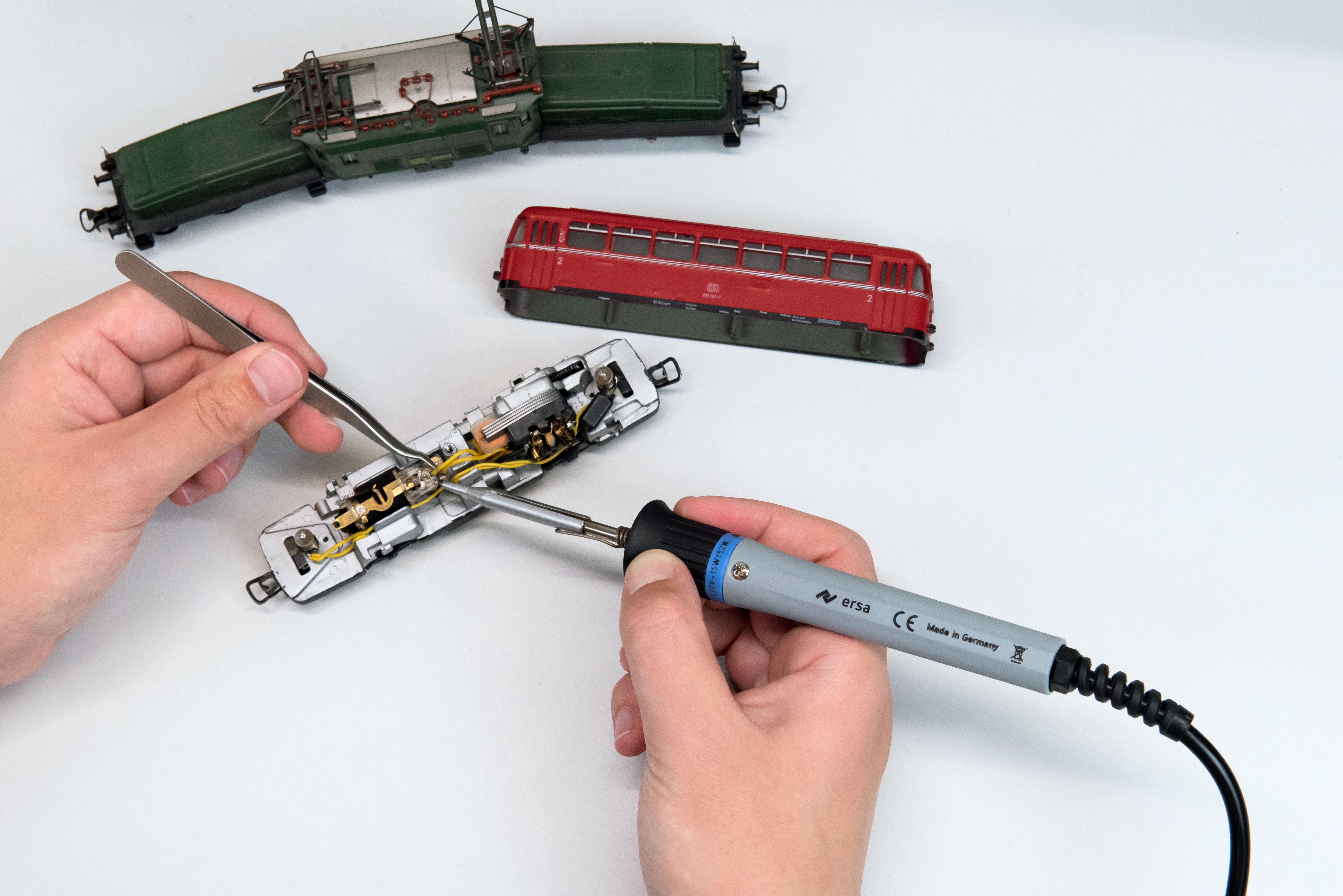 Ausgestattet mit einer 1,1 mm bleistiftspitzen ERSADUR-Dauerlötspitze (0162BD) und einer Ablage (0A18).