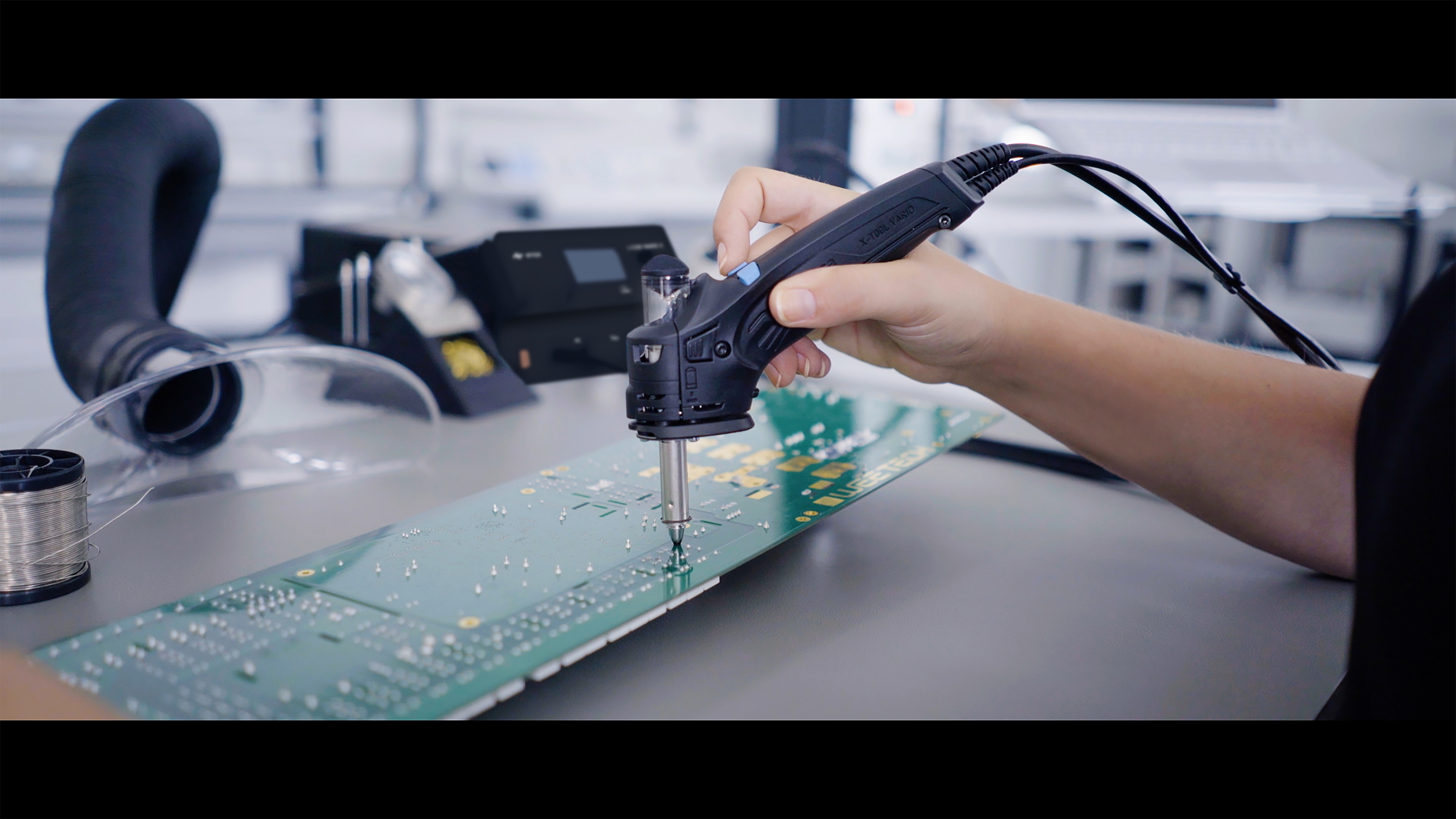 This station provides the user with an ergonomic hot air pencil AIR-Tool (200 W) for contactless energy transfer and the X-Tool vario (150 W) for desoldering wired components.