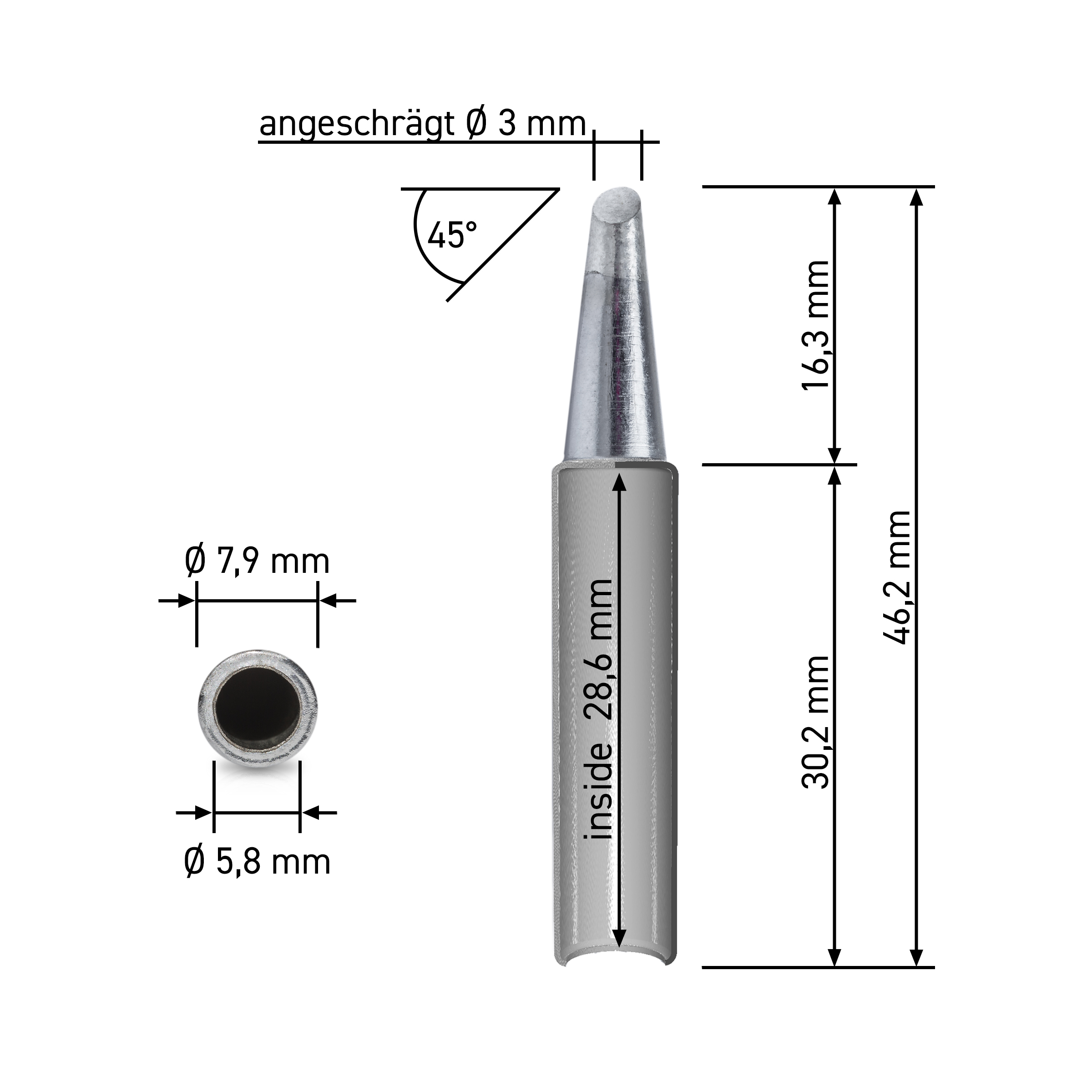GALLUNOPTIMAL Dauerlötspitze für SPRINT150, gerade, angeschrägt 45°, Ø 3mm