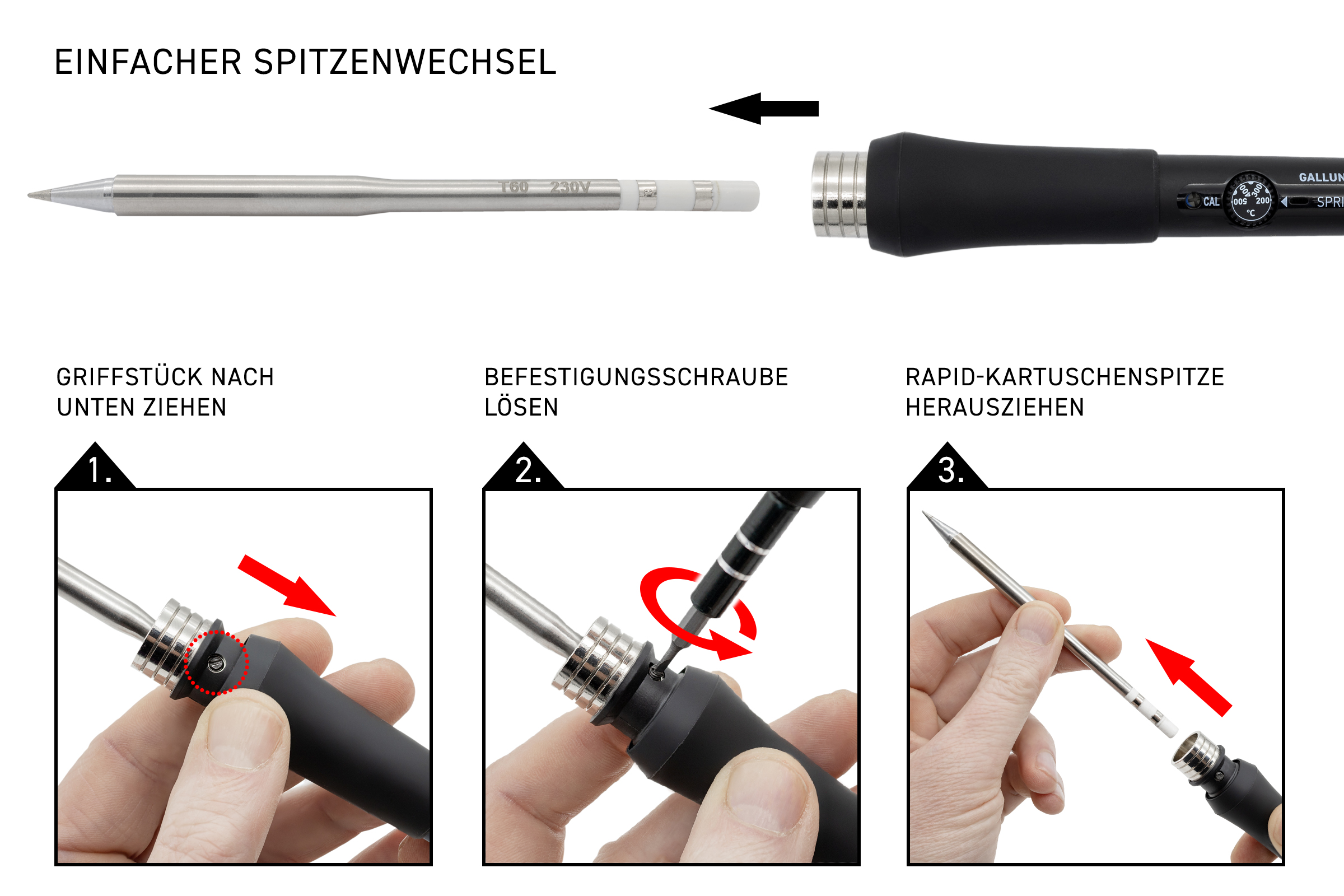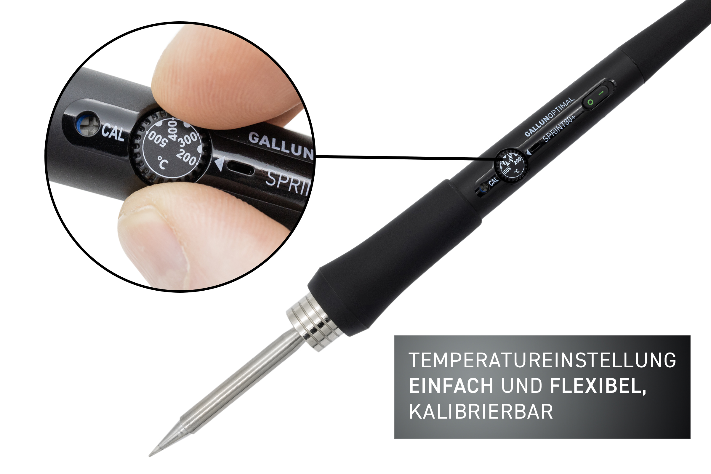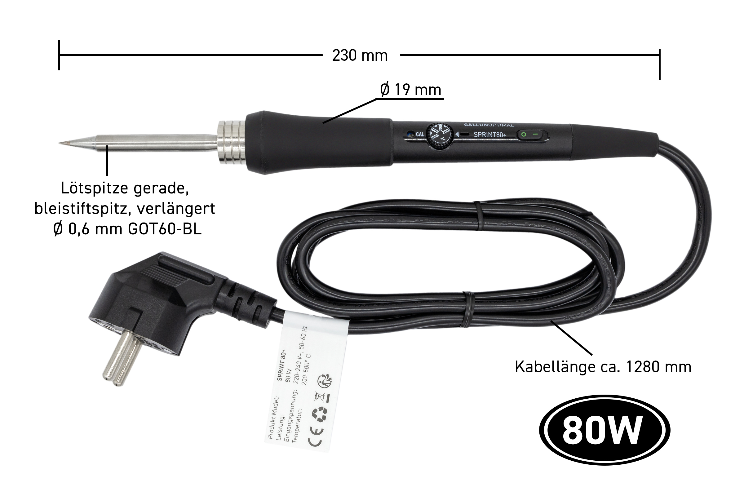 GALLUNOPTIMAL Sprint80+ Lötkolben 80W, 230V, 200-500°C, temperaturgeregelt, mit Kartuschen-Lötspitze LED-Indikation, kalibrierbar