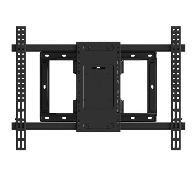 The tilt- and swivel-adjustable BrackIT XL HD II wall mount is suitable for single screens with a screen diagonal of 55–75 inches | 140–191 cm. Installation can be done in either landscape or portrait orientation using the included universal VESA mount, compatible with VESA sizes ranging from a minimum of 200 x 200 mm to a maximum of 800 x 600 mm. The tilt angle of the mount can be continuously adjusted between -6° and +7° during installation. The mount can also be swiveled up to ±45°, depending on the size of the mounted screen.