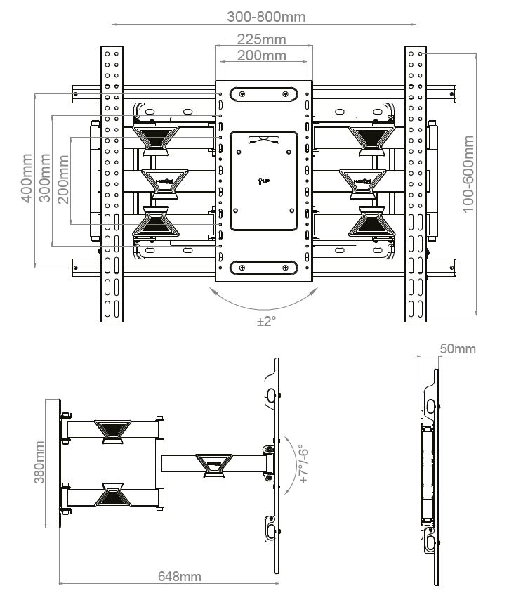 – Includes universal VESA mount, from min. VESA 200 x 200 to max. 800 x 600 mm