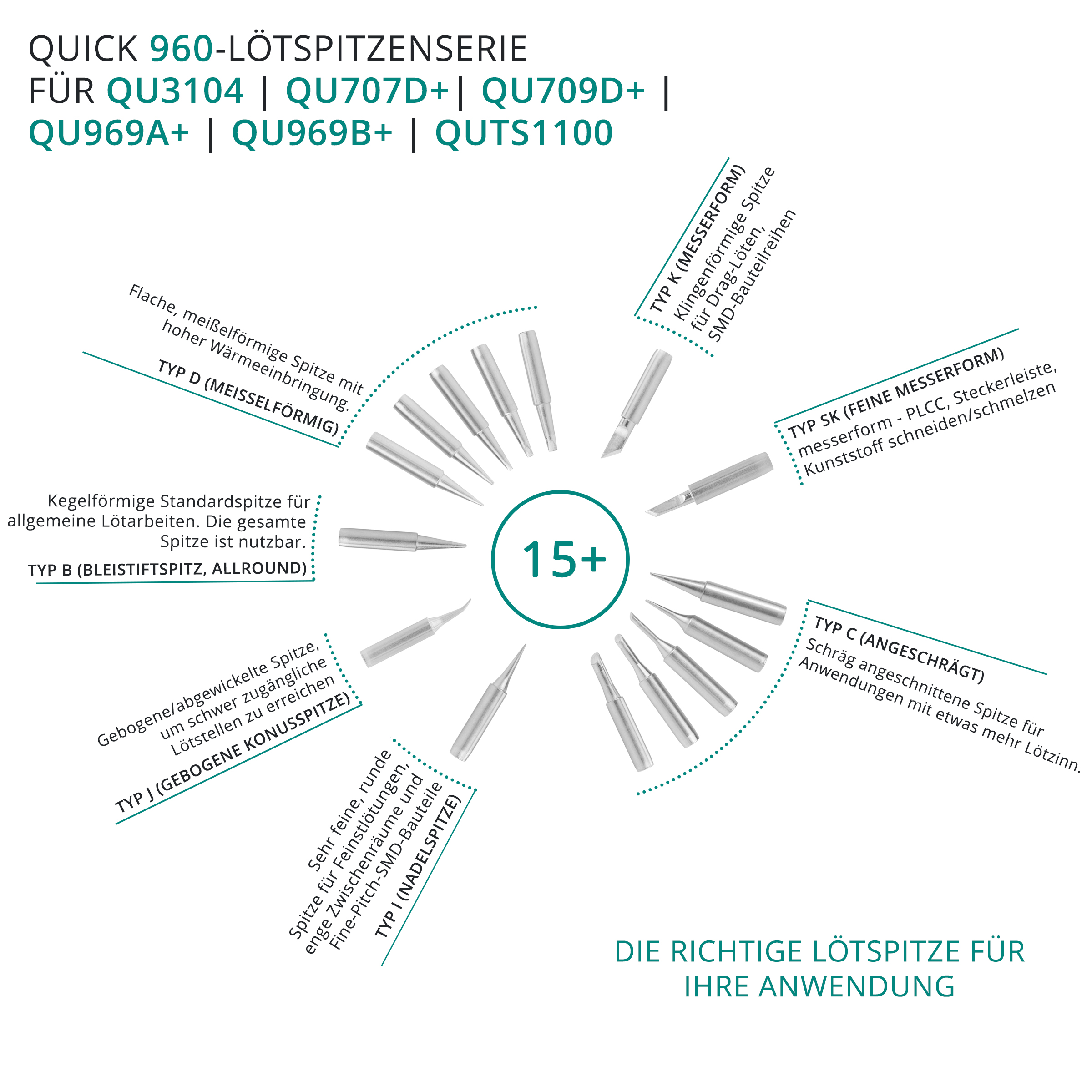 QUICK permanent soldering tip for 3103/3104/TS1100, straight, tapered 45°, Ø 0.8mm