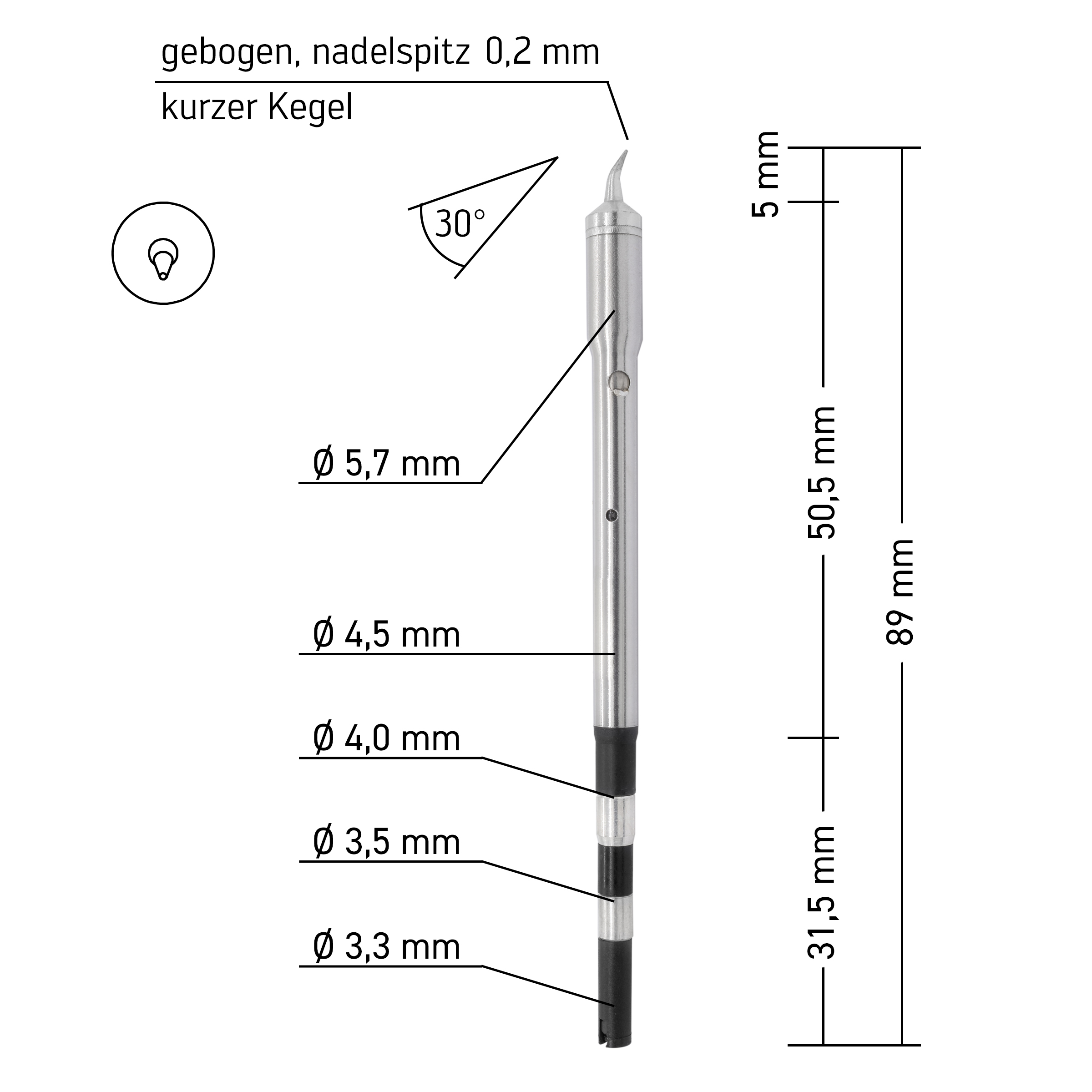 Tip shape: short cone, needle point
