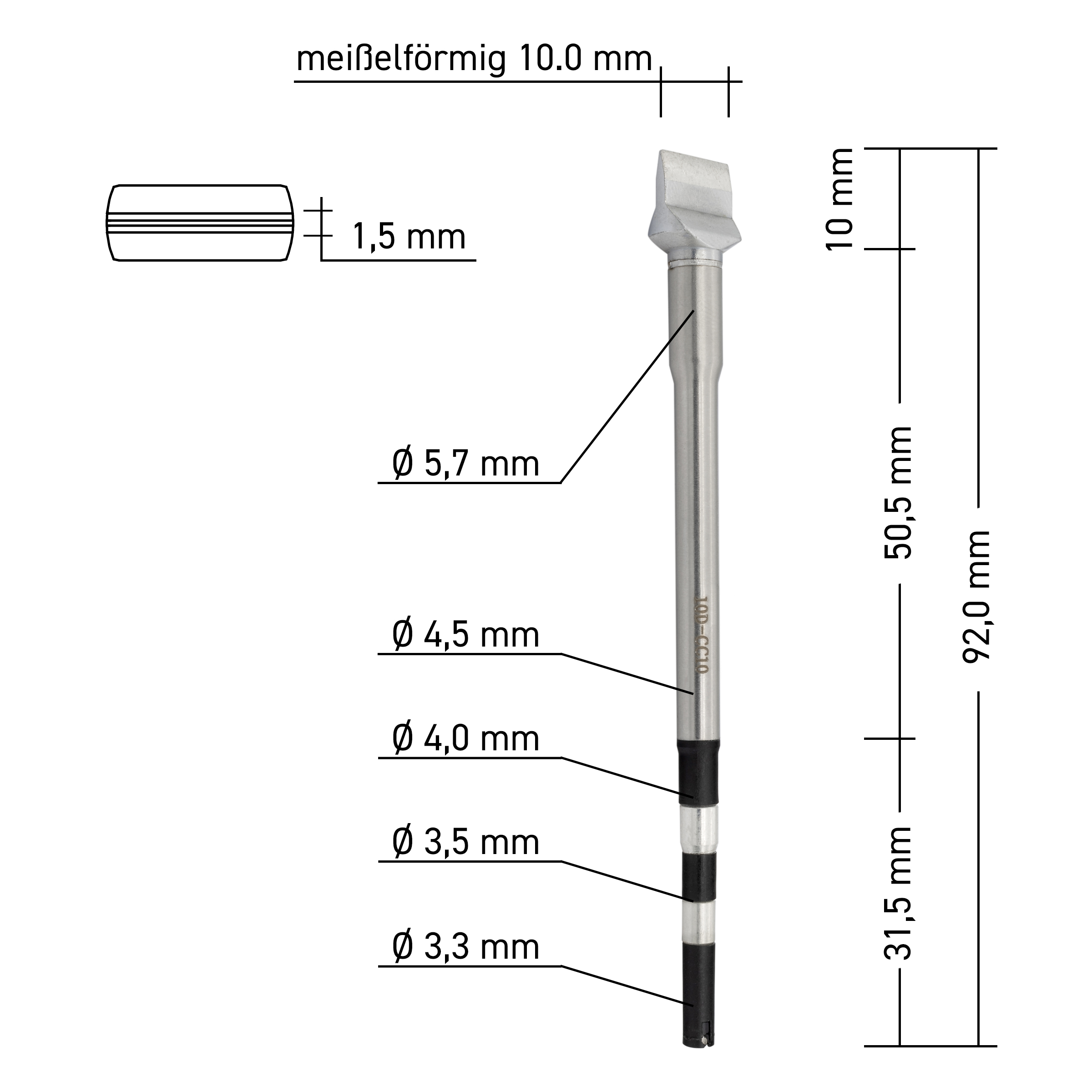 Zusätzlich schonen die sehr genaue Temperaturregelung sowie die Standby-Funktion der TS8, TS8+ -Lötstationen die Lötspitzen und sorgt für höhere Spitzen-Standzeiten. Dies minimiert Folgekosten und optimiert Abläufe. [FORM] kurzer Kegel, bleistiftspitz | Ausführung: gerade | Maße: Ø 0,5mm rund | 2mm Lot-benetzt | QUICK Kartuschenlötspitze gefertigt mit höchsten Ansprüchen für die industrielle Fertigung.