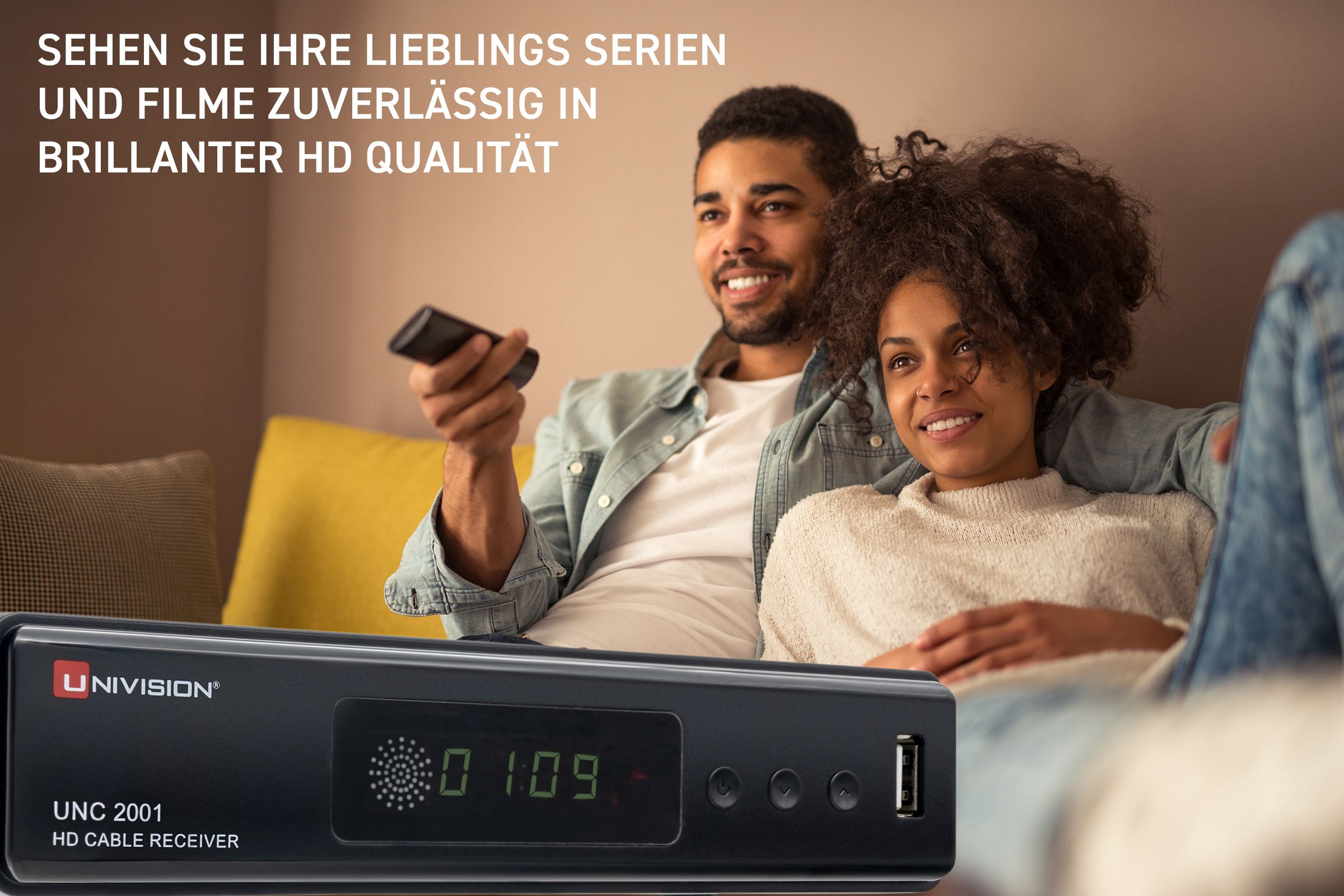 Der UNC2001PVR ist ein einfach bedienbarer Receiver zum Empfang aller freien TV– und Radiosender via Kabel-TV, inklusive in HDTV ausgestrahlter Programme für alle gängigen Anbieter mit Aufnahme und Time-Shift Funktion.