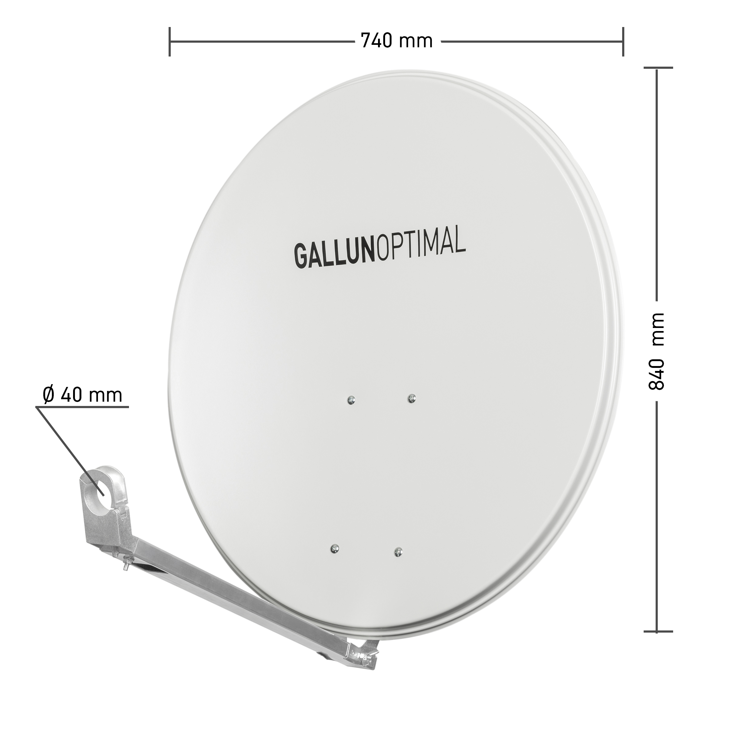 GALLUN Offset-Parabolantenne professionell, ALU 74x84cm hellgrau, Gewinn 37,75dB