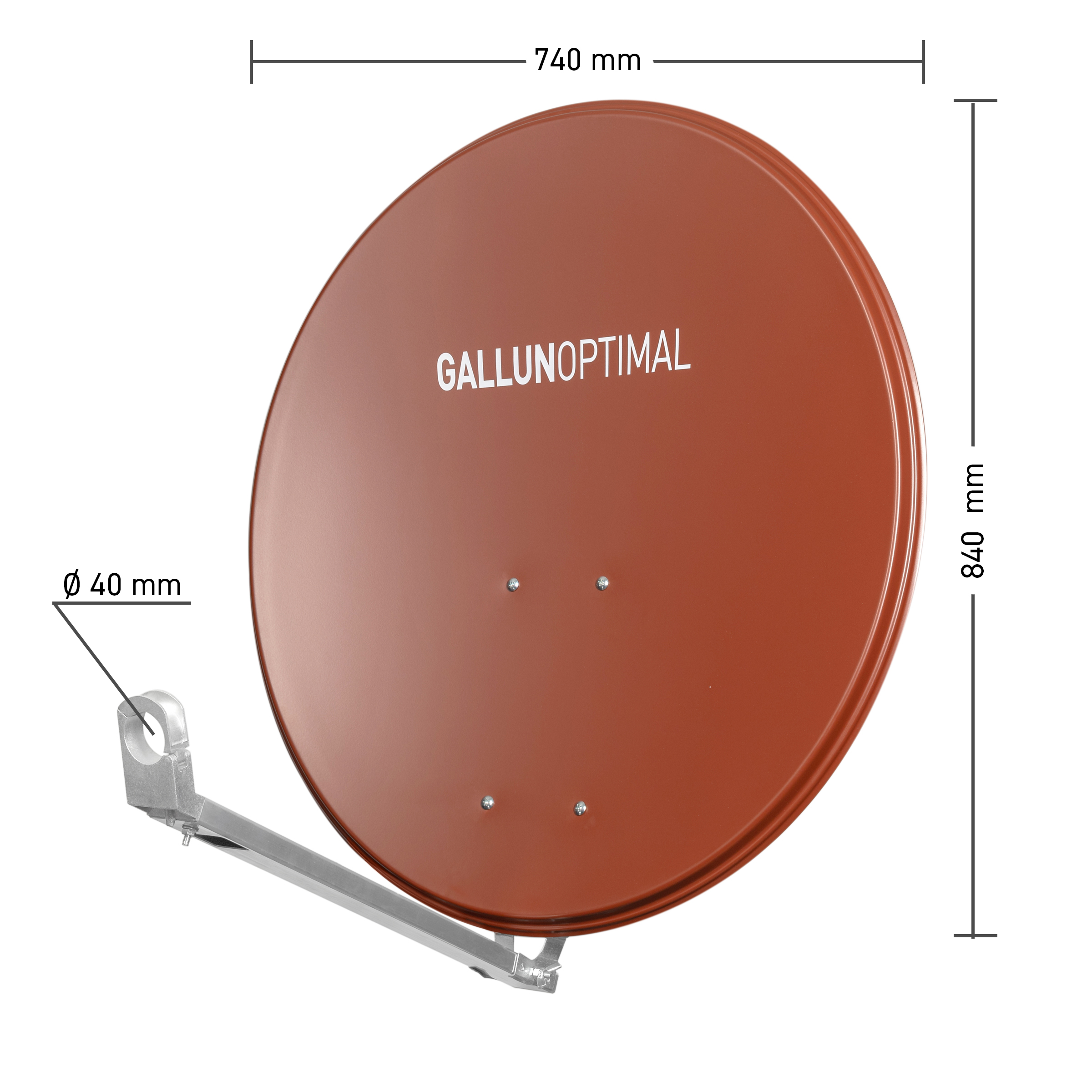 GALLUN Offset-Parabolantenne professionell, ALU 74x84cm ziegelrot, Gewinn 37,75dB