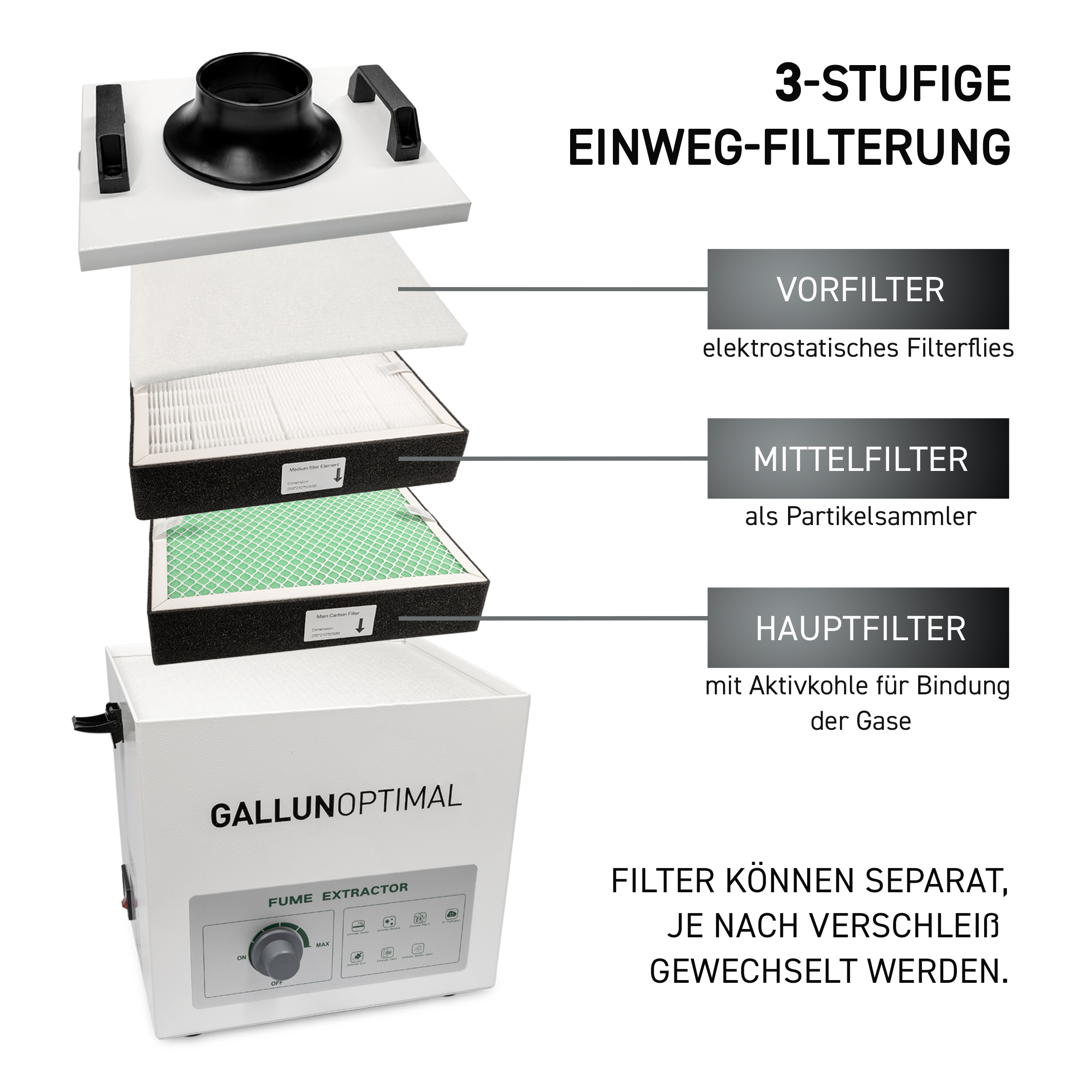 – dreistufiges Filtersystem für höchste Filtrationseffizienz