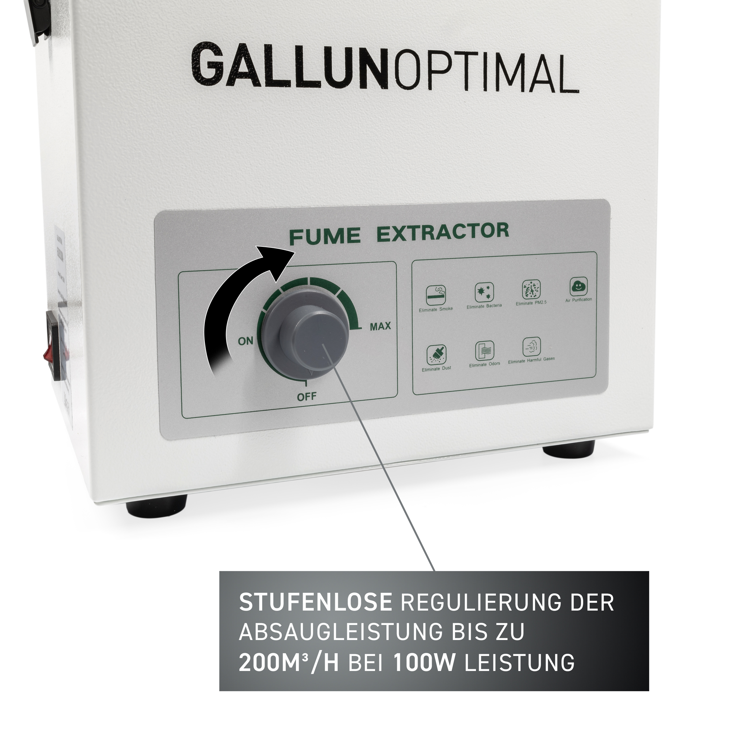 – leistungsstarker 100W Motor mit regelbarer Absaugung bis 200 m³/h