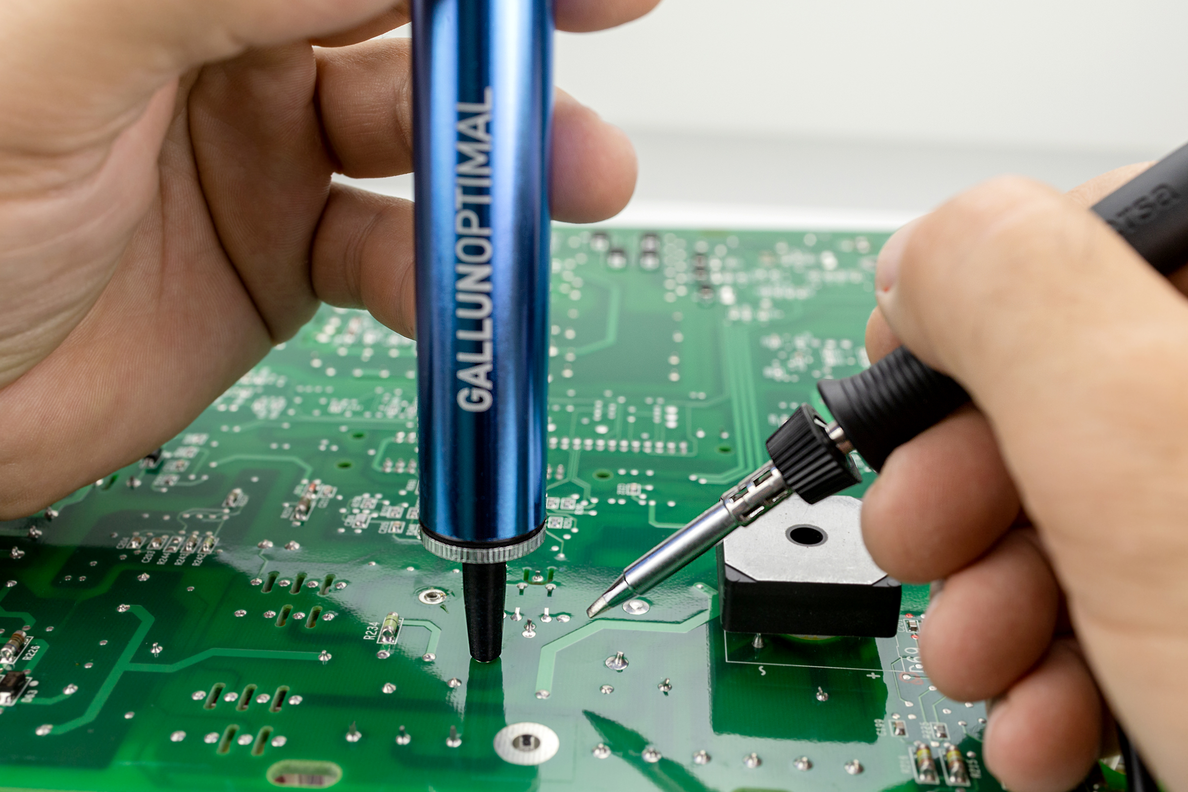 2. abzusaugende Lötstelle mit einem Lötkolben in die Schmelze bringen