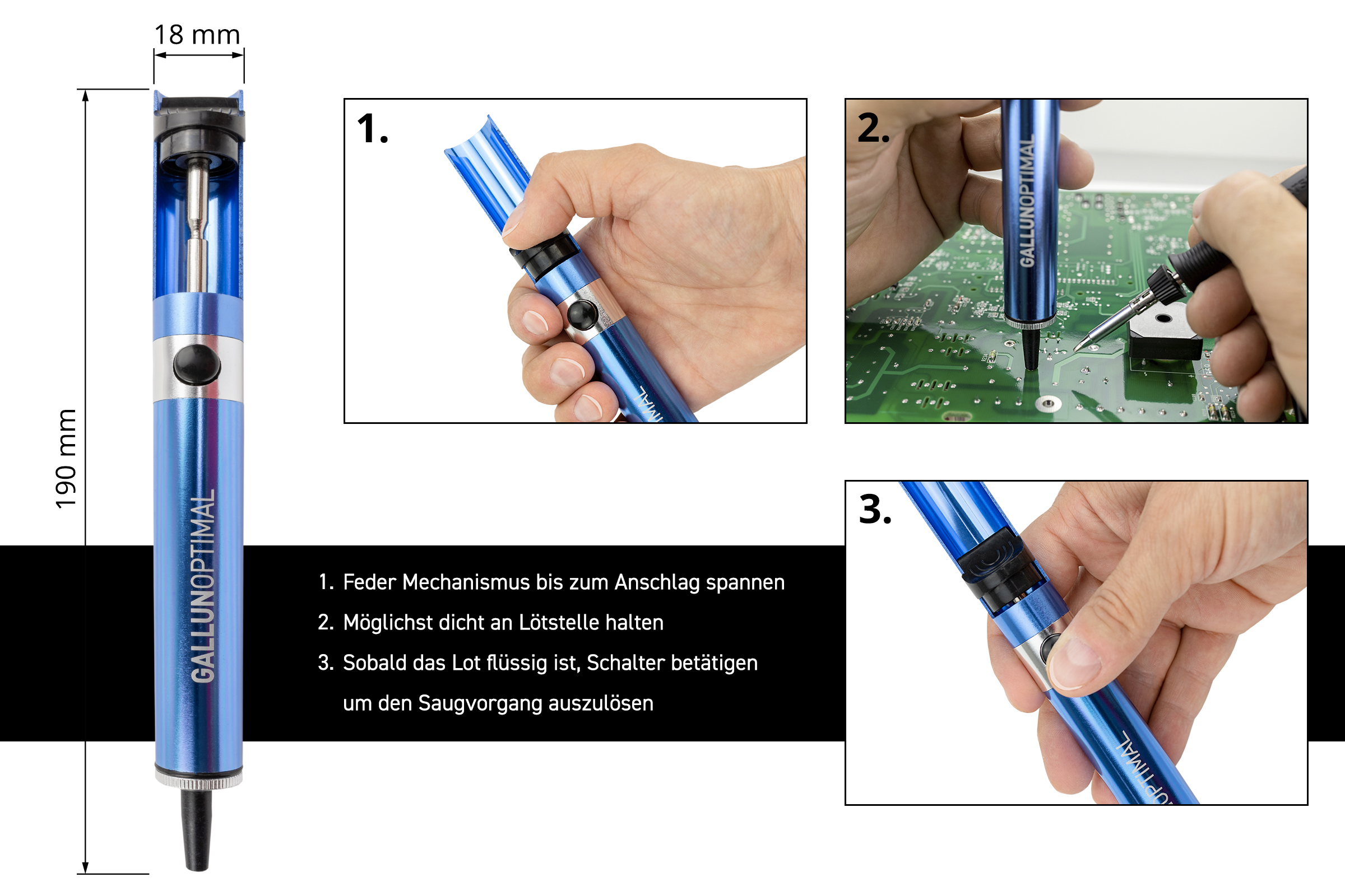 GALLUNOPTIMAL Entlötpumpe ESD für händische Lotzinnabsaugung, professionelle Ganzmetallausführung, blau, in Blisterverpackung