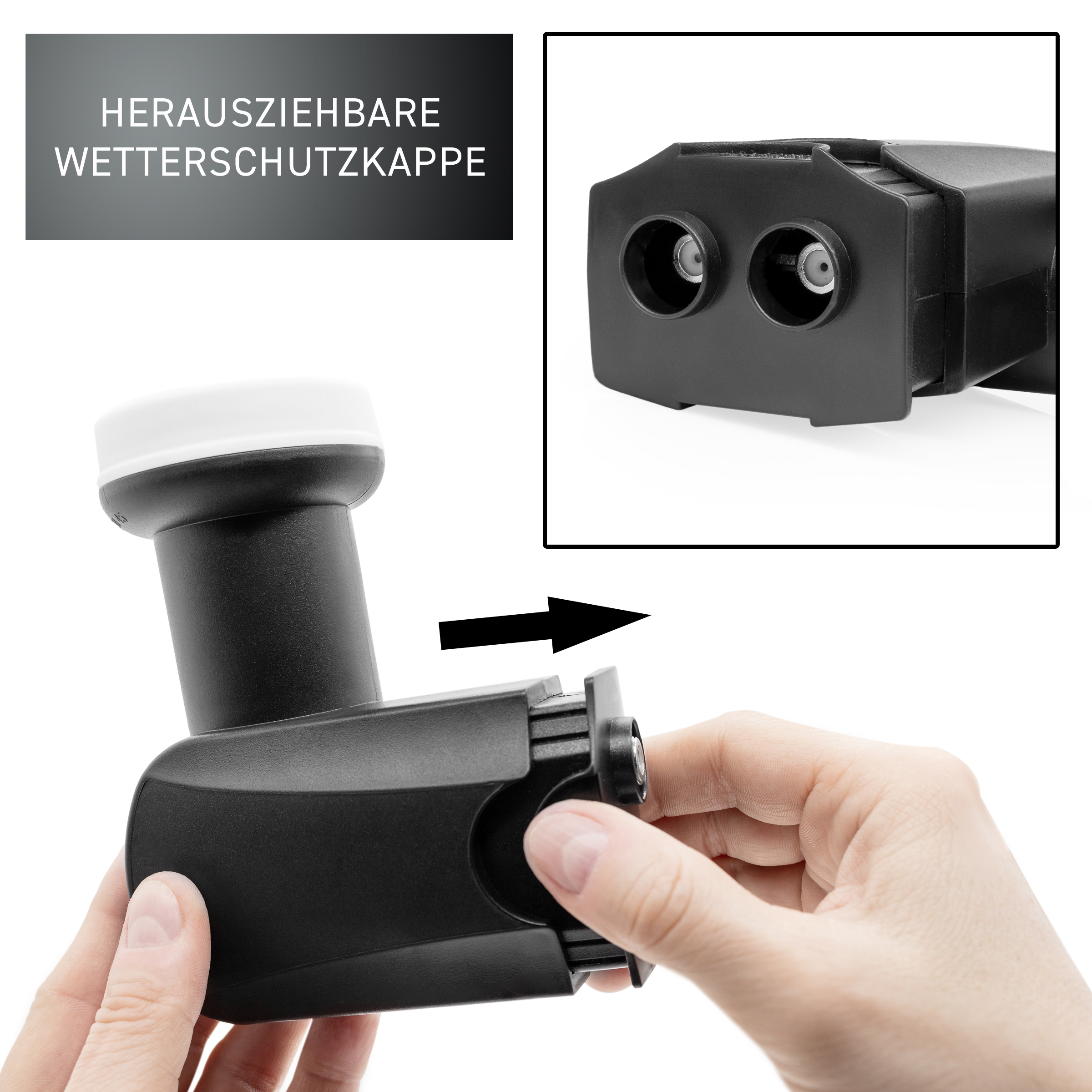– Anschlüsse: 2× F-Buchse mit Wetterschutzkappe