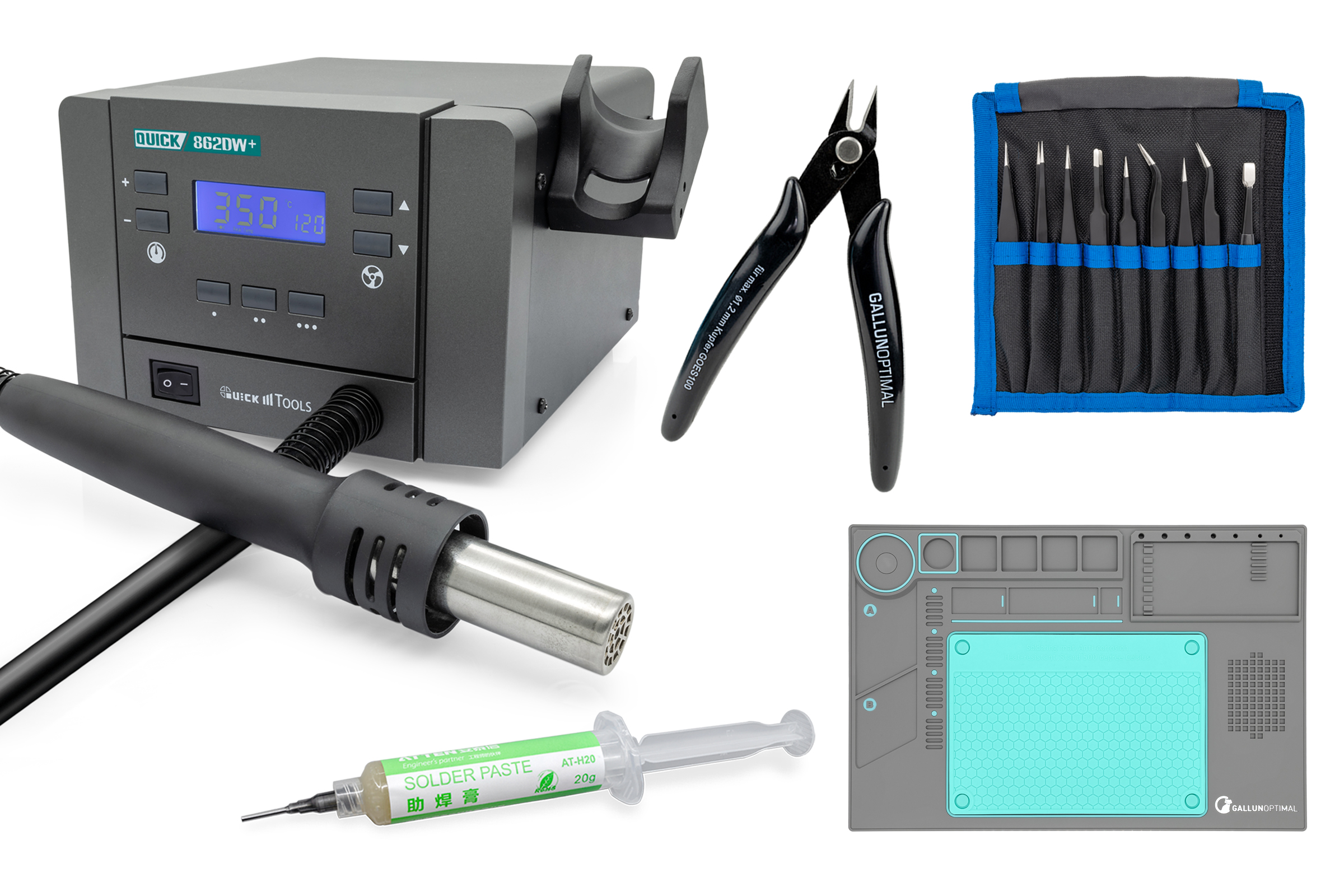 Digitale Lötstation QUICK TS1100 mit LCD-Display, Auto-Standby, kalibrierbar, ESD-Test-Funktion und 3 Temperaturspeicher, 200-450°C. Dank prozessor- und sensorgesteuerter Temperaturregelung und hoher Leistungsreserven wird die Soll-Temperatur sehr schnell erreicht und stabil gehalten. Somit ist die Station bestens zum bleifreien Löten geeignet.